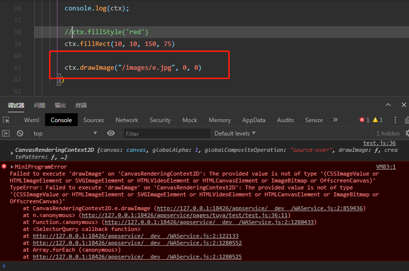 ctx.fillStyle = 'red' // 2d 的 drawImage 第一个参数需要传图片对象,可以通过 canvas.createImage() 创建
