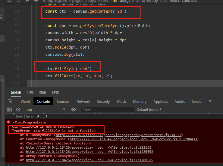 问题1: 按API 要求 使用fillStyle 代替 setFillStyle 但是运行报错 ctx.fillStyle is not a function.。 这里就产生一个问题 getContent(2d) 返回的 RenderingContext 要如何与 CanvasContext 进行联系呢 ? 请指教下
