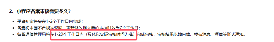 你好,该小程序APPID:wx62f0199522ab2d97当前备案订单状态等候管局审核中,各省通信管理局将在1-20个工作日内(具体以实际审核时间为准)完成审核,审核结果以站内信、模板消息、短信等形式通知。