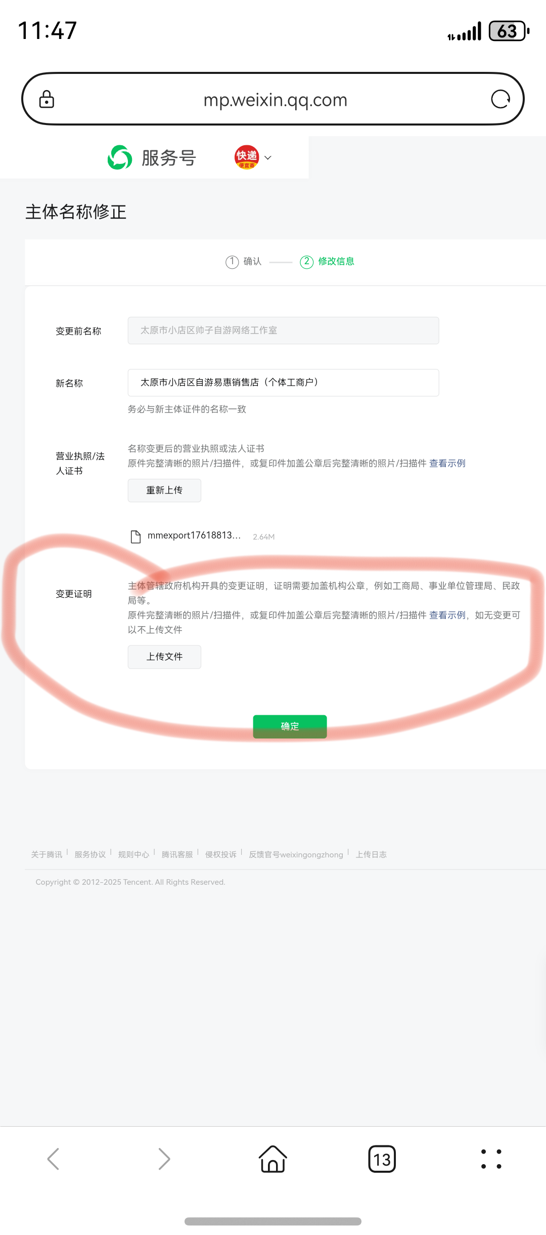 你好修改主体信息的时候,让上传变更证明,代办营业执照的公司把我变更证明给弄没了,现在有重新办理下来新的营业执照原件,和原来的旧营业执照,就是变更了企业名称和经营范围,信用代码没有变