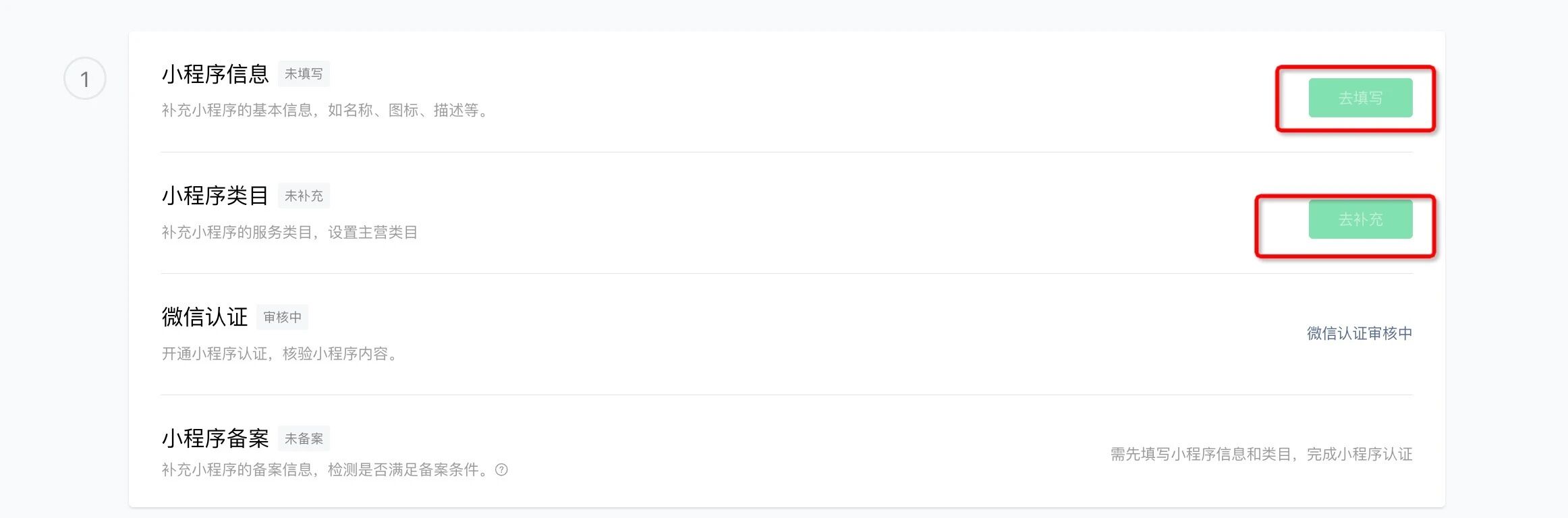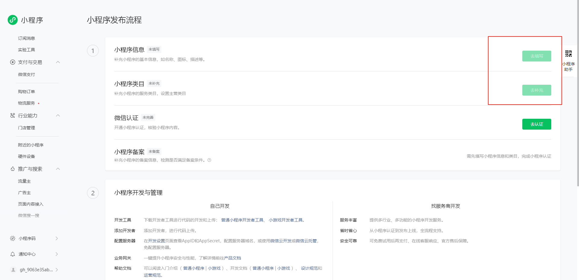 小程序信息以及小程序类目无法填写,点击去填写无反应,原始ID:gh_3dedcdd20bcf