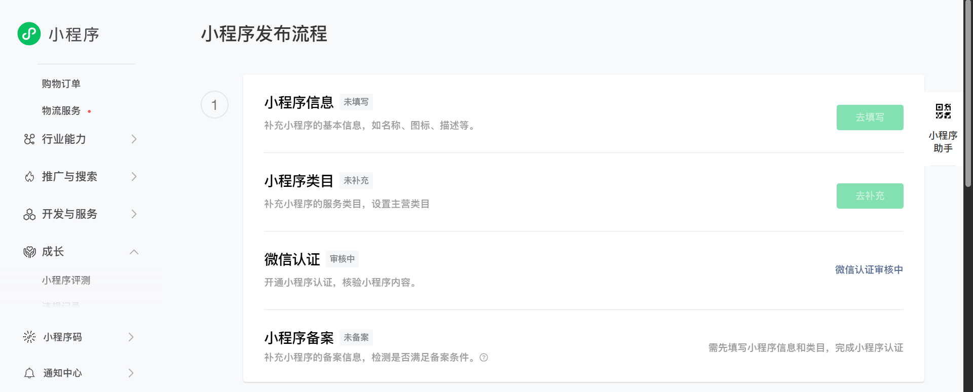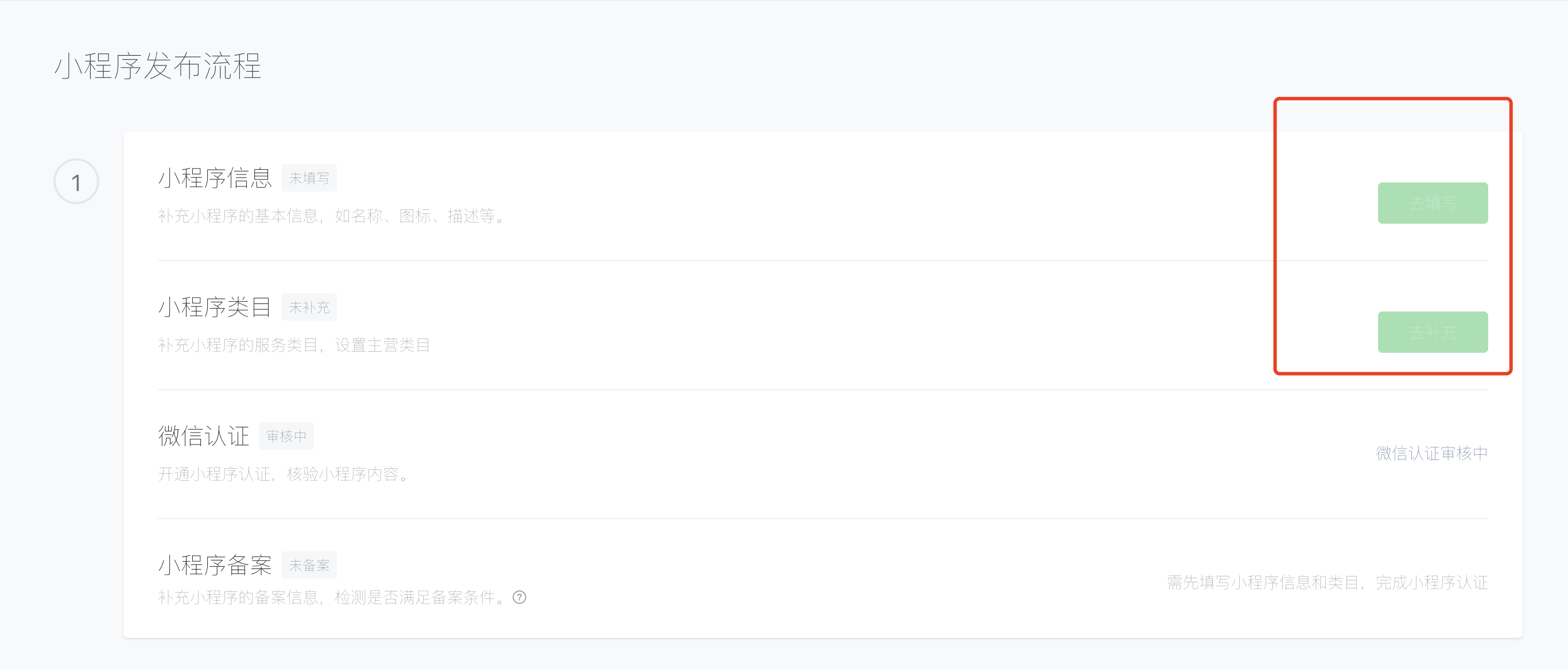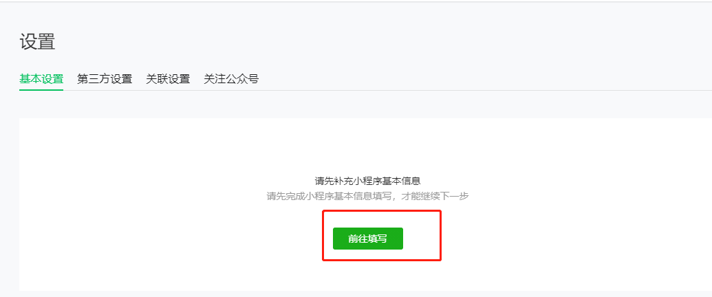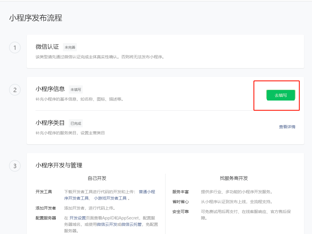 企业小程序发布时点击去填写按钮无效,没反应。设置里微信认证又要先填写信息,现在已经卡住没办法下一步了