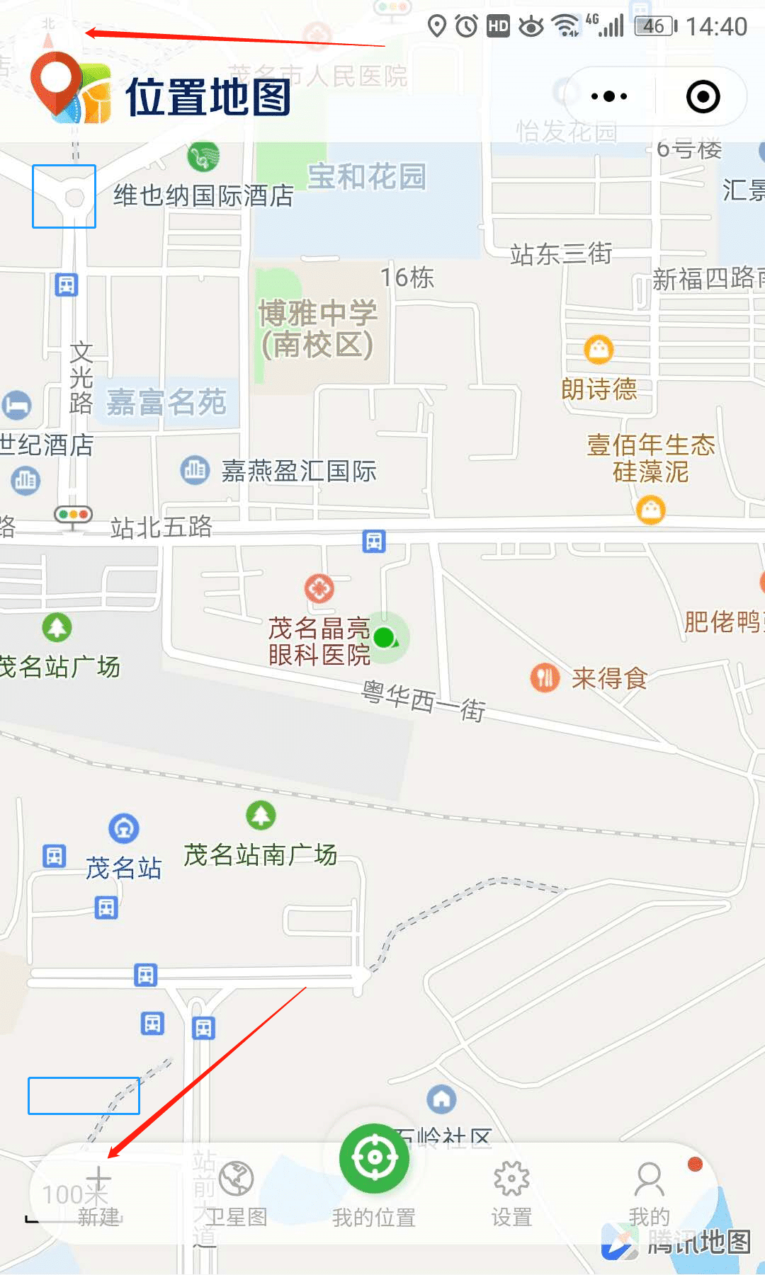 demo中的地图是全屏的,效果如图,我需要启用指南针和比例尺(图中红箭头所指位置),但整个界面上下有两个bar,刚刚遮挡了这两个控件。