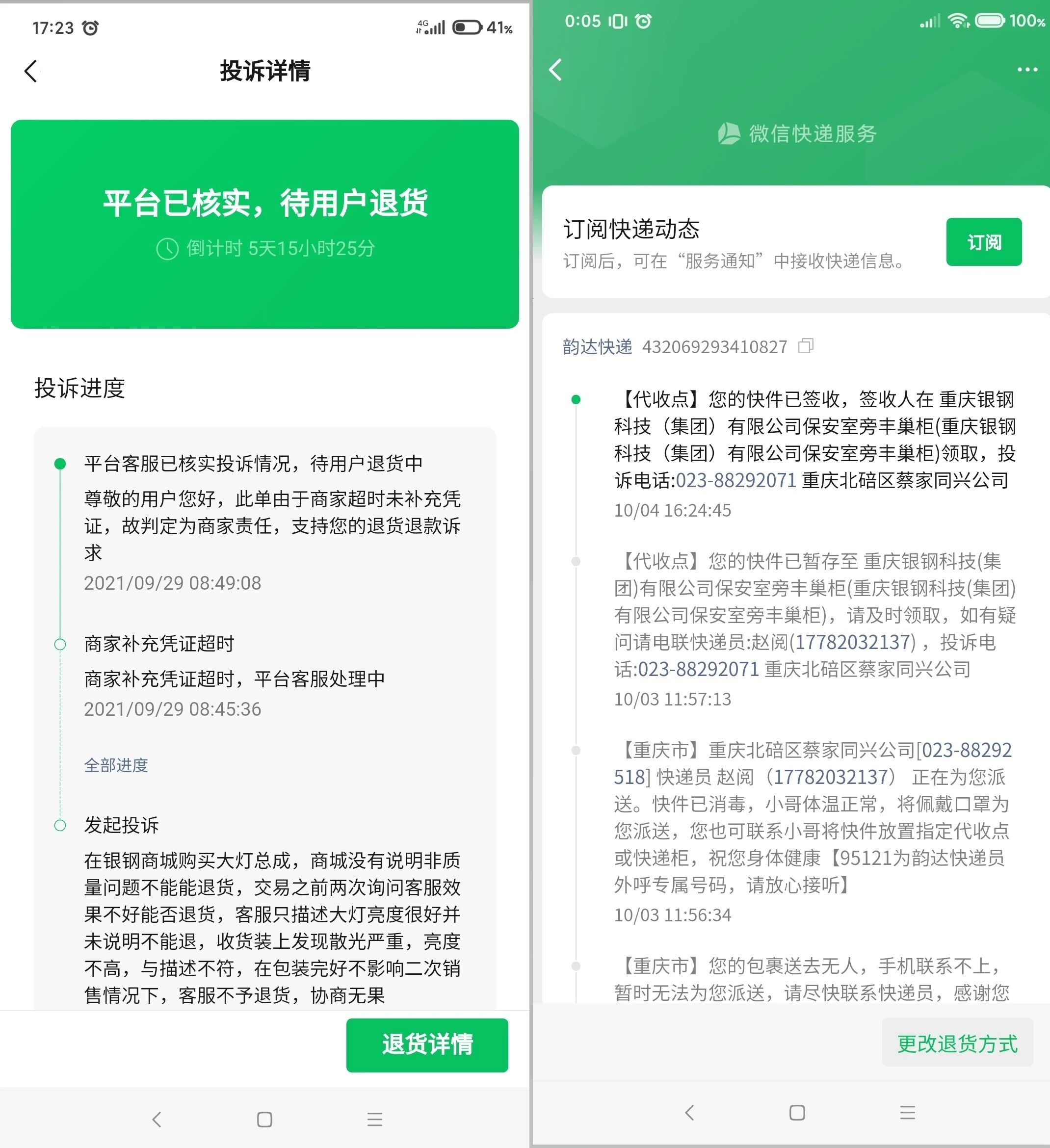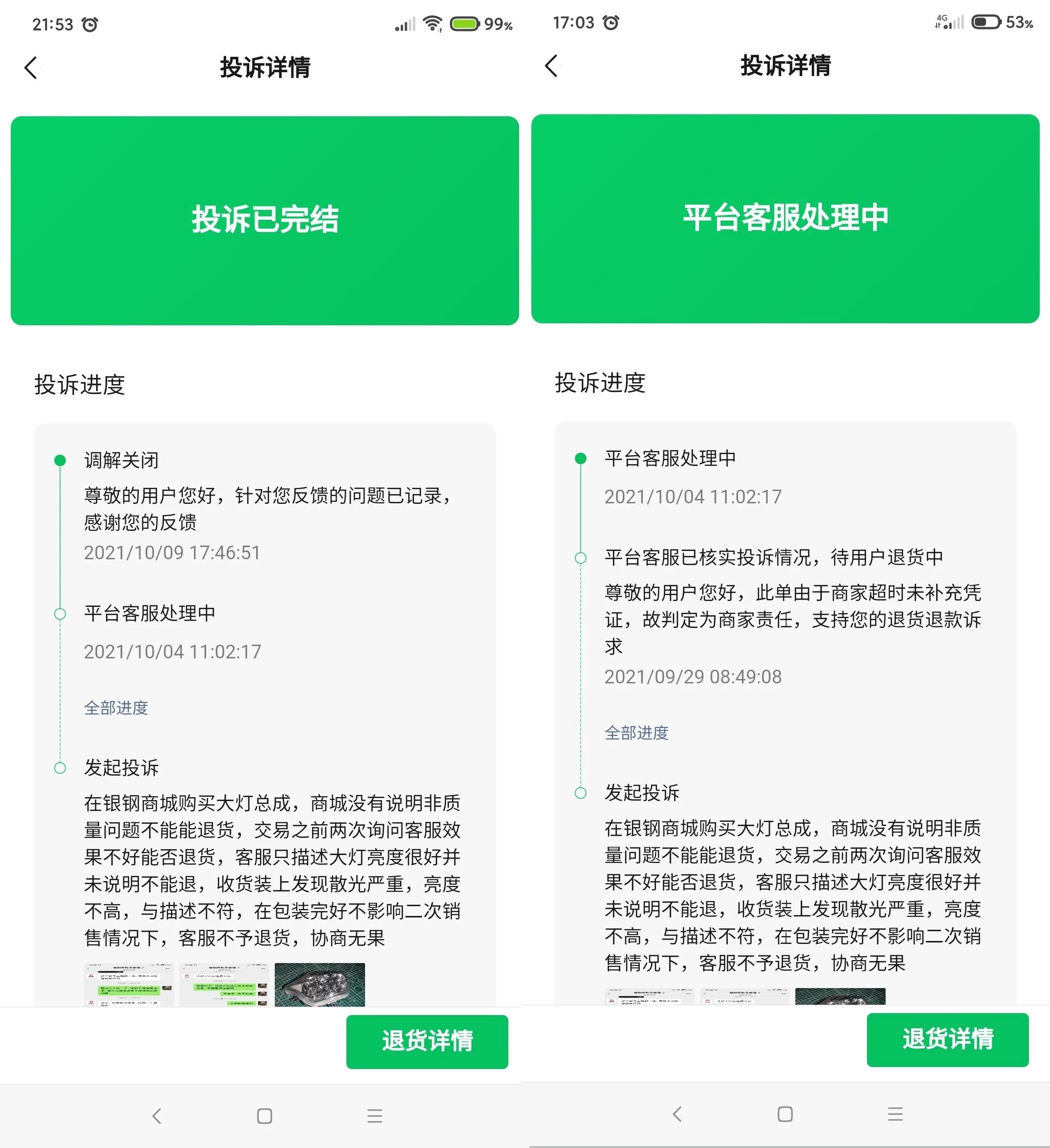 以霸王条款拒绝退货申请,投诉之后退货不退款,投诉都完结了,依然不处理,也不回消息协商,逼得我对其他订单恶意投诉。