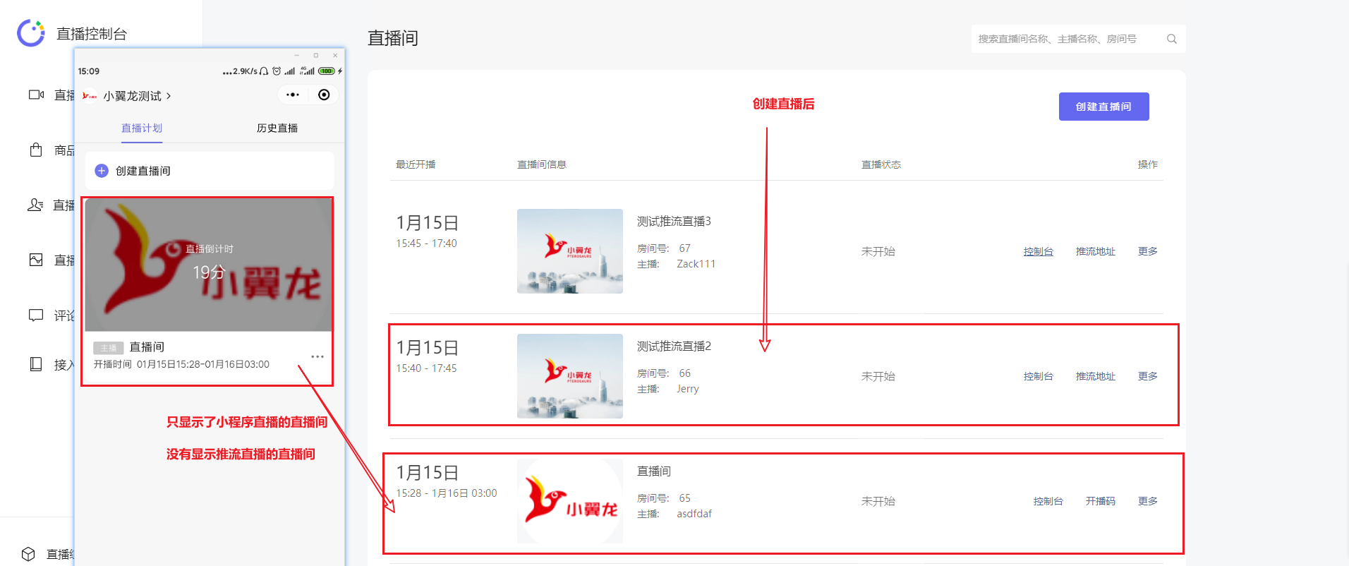 通过微信小程序直播API创建推流直播间后,主播用户在小程序直播中不能查看到创建的推流直播间,那么应该如何开始推流直播间的直播呢?