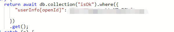 db.collection('test').where({ userInfo: { openId: 'xxxxxxx' } }).get() 或者 db.collection('test').where({ 'userInfo.openId': 'xxxxxxx' }).get()