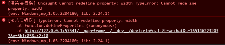 [渲染层错误] TypeError: Cannot redefine property: width,今天在测试的时候遇到的,