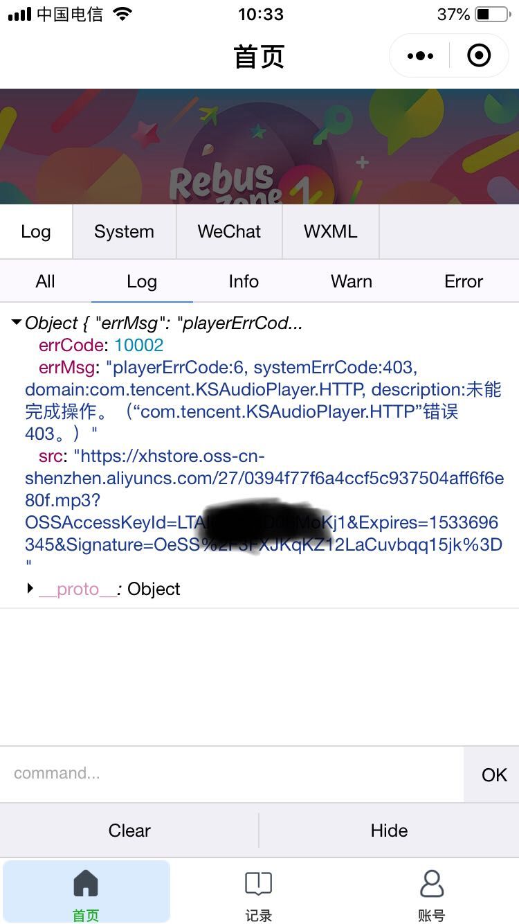 在播放需要鉴权的音频文件时,开发者工具中,可以正常播放。但是在手机中微信小程序播放时,就报错了,原因是阿里云OSS鉴权验证失败,导致返回403错误;