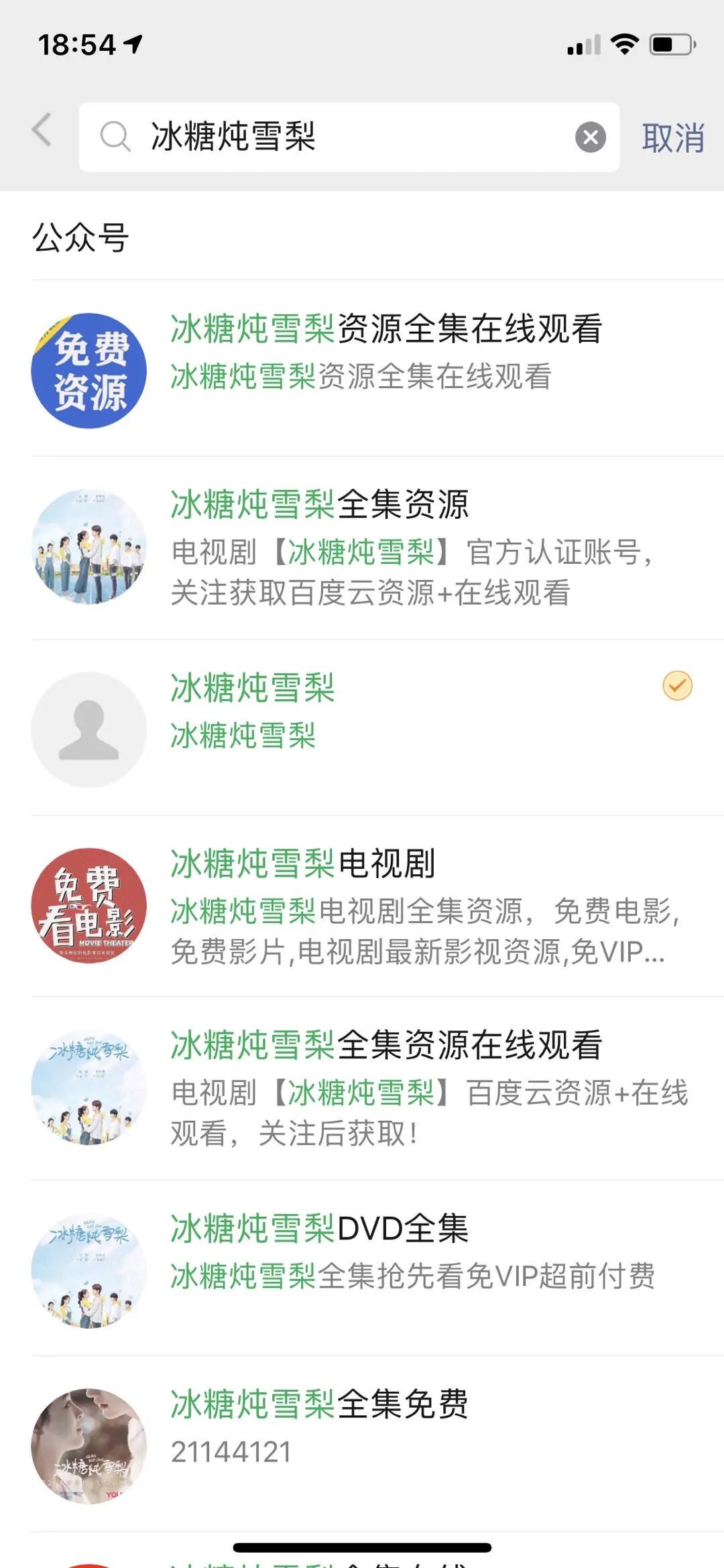 我的公众号:冰糖炖雪梨粉丝,之前在公众号添加那里搜索关键字“”冰糖炖雪梨 还看到排名第四的位置,前天下午开始在搜索冰糖炖雪梨 就找不到我那个公众号了,帮忙看一下原因着急!原始ID:gh_ce544812213b 这几天严重影响我的流量!