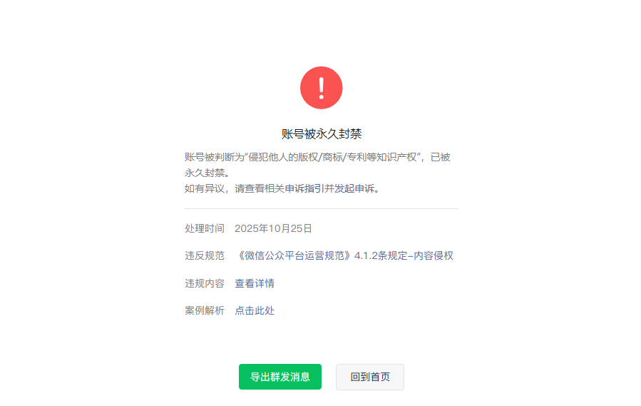 公众号被平台判断为侵犯他人版权商标被永久封禁,想问问确切的封禁原因是什么,是商城商品?还是商标?这些都是有授权的可以提供,账号也是本公司所有,如果要申诉的话需要什么材料可以申请解封呢?
