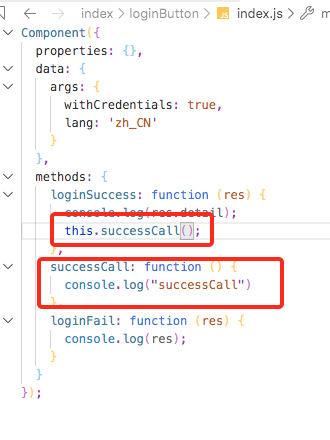 在bind:success 回调中, 可以访问到data属性,却访问不到methods里面对应的function