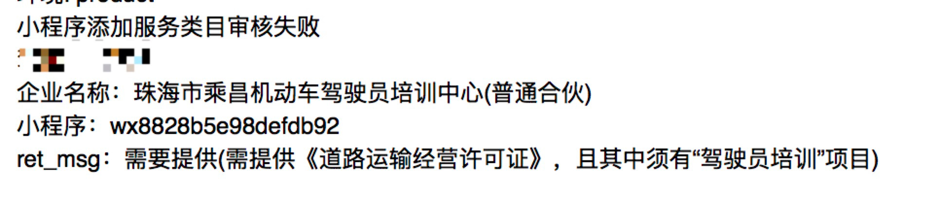 用户提交与小程序注册主体一致的《珠海市机动车驾驶员培训机构技术等级证书》可支持“教育-驾校培训 ”类目申请。