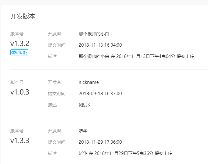 线上版本、体验版本只能有一个,开发版本可以有多个。