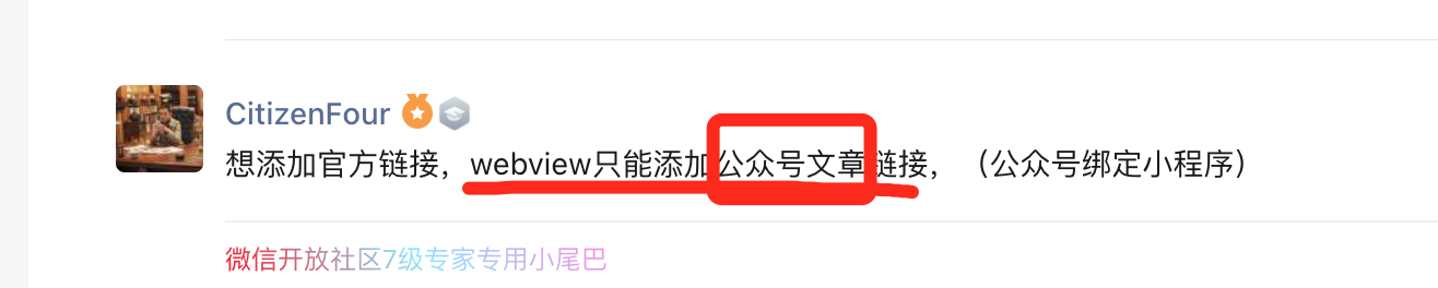 想添加官方链接,webview只能添加公众号文章链接,(公众号绑定小程序)