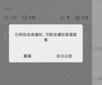 安卓手机在图文消息中点击订阅按钮订阅长期通知后,再次点击该按钮会出现如下图的两种提示,但是苹果手机在第一次订阅按钮后再次点击不会有下图的提示,体验链接