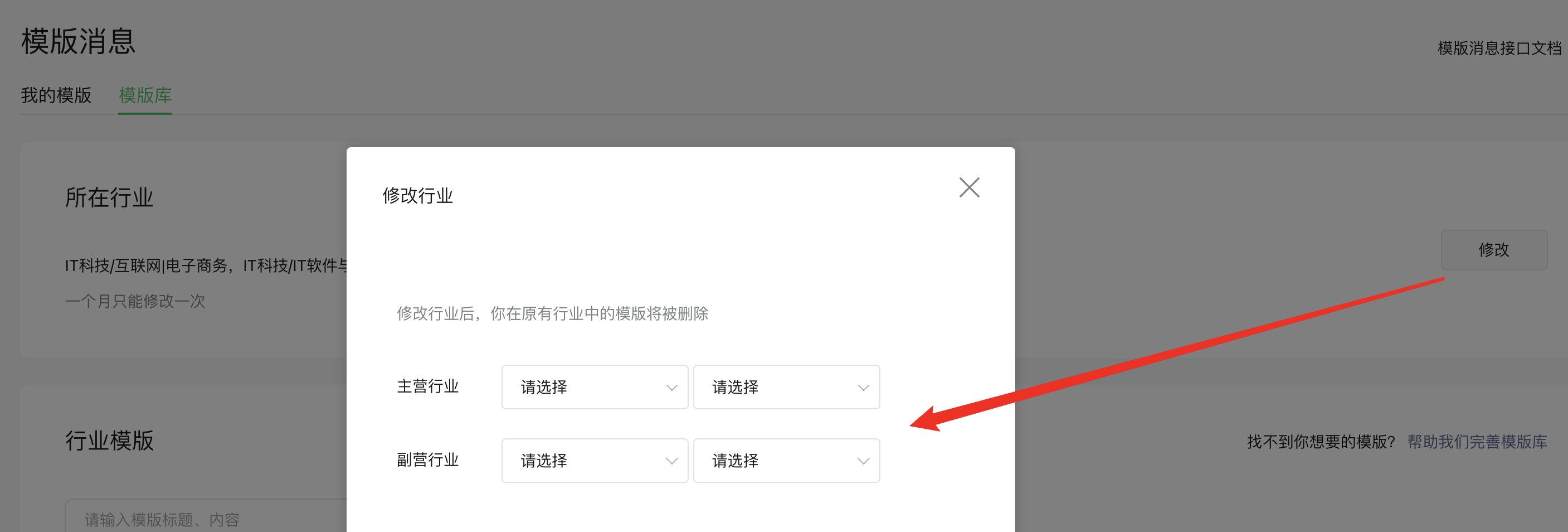 目前我选择的是IT/科技 互联网行业,没有这个模板消息,搜索相关关键词都没找到