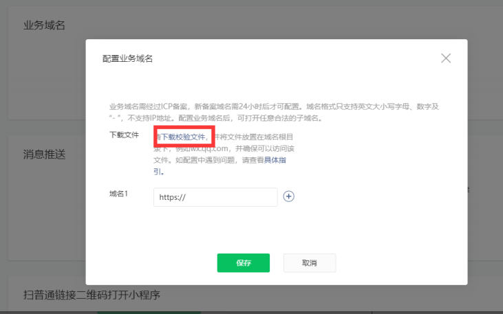 链接其他系统,要求下载域名校验文件,但是找不到这个界面?是因为小程序是个人的原因吗?
