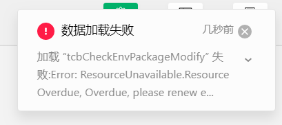 选择配额方案报错,加载 tcbCheckEnvPackageModify 失败, Error: ResourceUnavailable.ResourceOverdue
