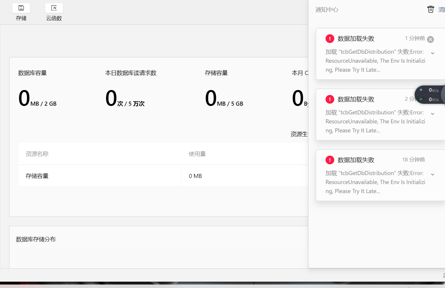 加载 “tcbGetDbDistribution” 失败:Error: ResourceUnavailable, The Env Is Initializing, Please Try It Later. (fd9dc3c8-9601-490d-b8e2-10088da7fb40)