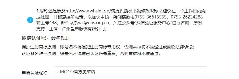 公众号和小程序一直都是用奥特莱斯,忽然现在说名称审核不通过,是所有包含奥特莱斯的都不能审核通过了?名称为MO&Co. 奥特莱斯旗舰店