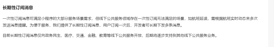 我的项目是属于消防安全的,需要一个长期订阅消息。啊啊啊......