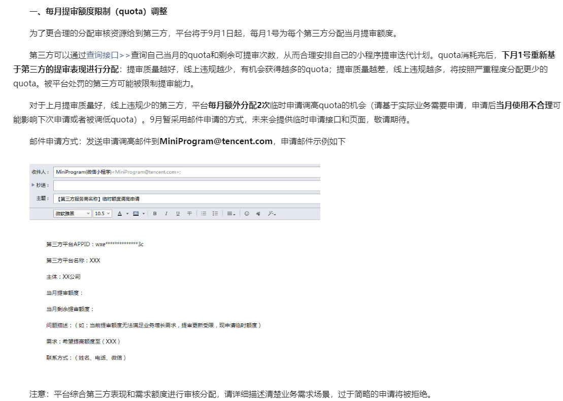 通过接口查询第三方平台提审限额为100,逐渐达不到业务需求.是要申请一个新的第三方平台?还是申请提高额度?