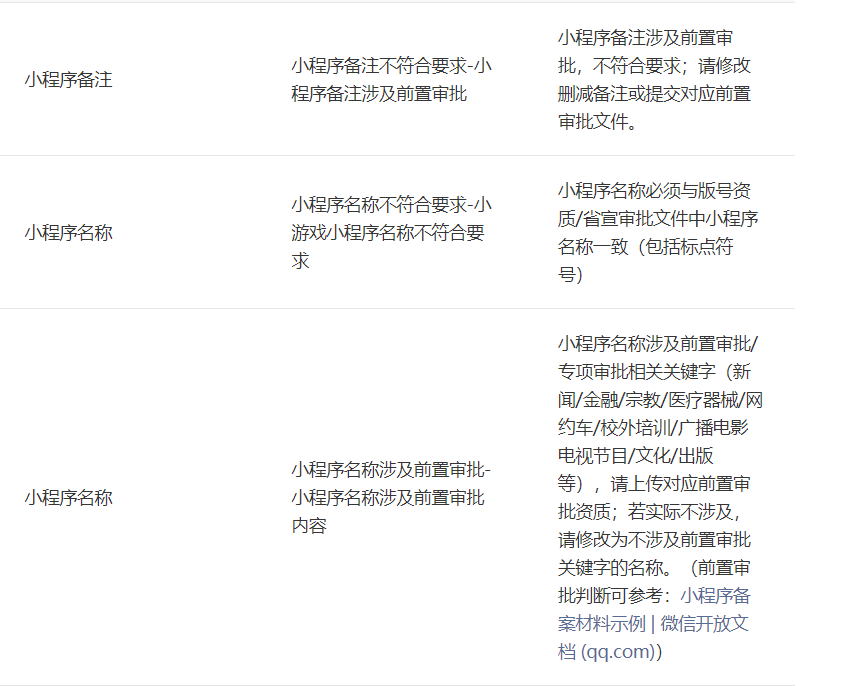1.小程序昵称涉及前置审批相关内容,前置审批相关关键词包含“支付”,具体请参考:https://developers.weixin.qq.com/miniprogram/product/record/record_faq.html