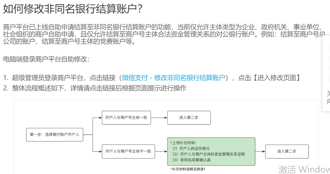 根据图1的教程,点击链接进入修改页面后,没有添加补充材料的地方,出现图2的页面,在图2的页面不能修改非同名银行结算账户