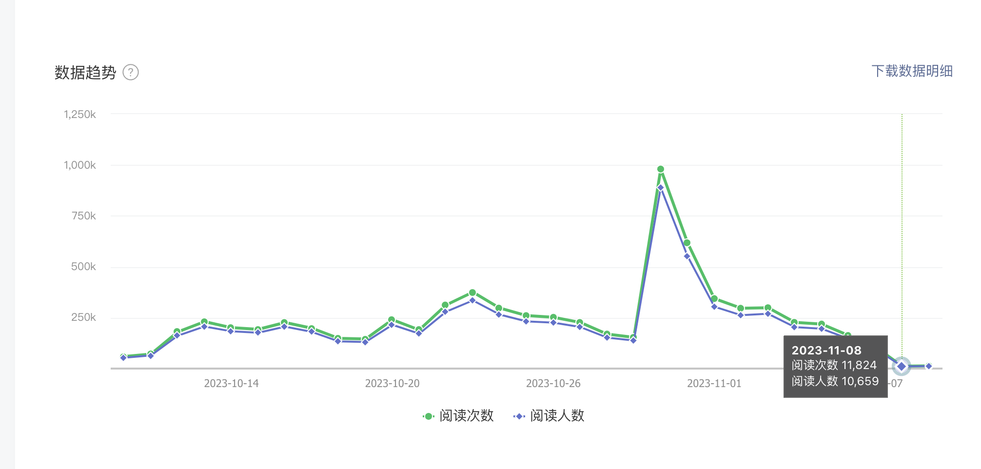 如图所示,从11月8日开始,公众号流量异常,完全没有推荐。有趣的是,11月4号,有人抄袭我的内容,然后投诉通过,对方被删文,并接受到处罚,流量居然还很正常。