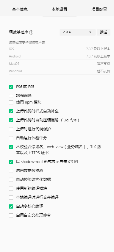 以下截图是开发者工具的配置,都没改过配置,一直用的都是默认配置