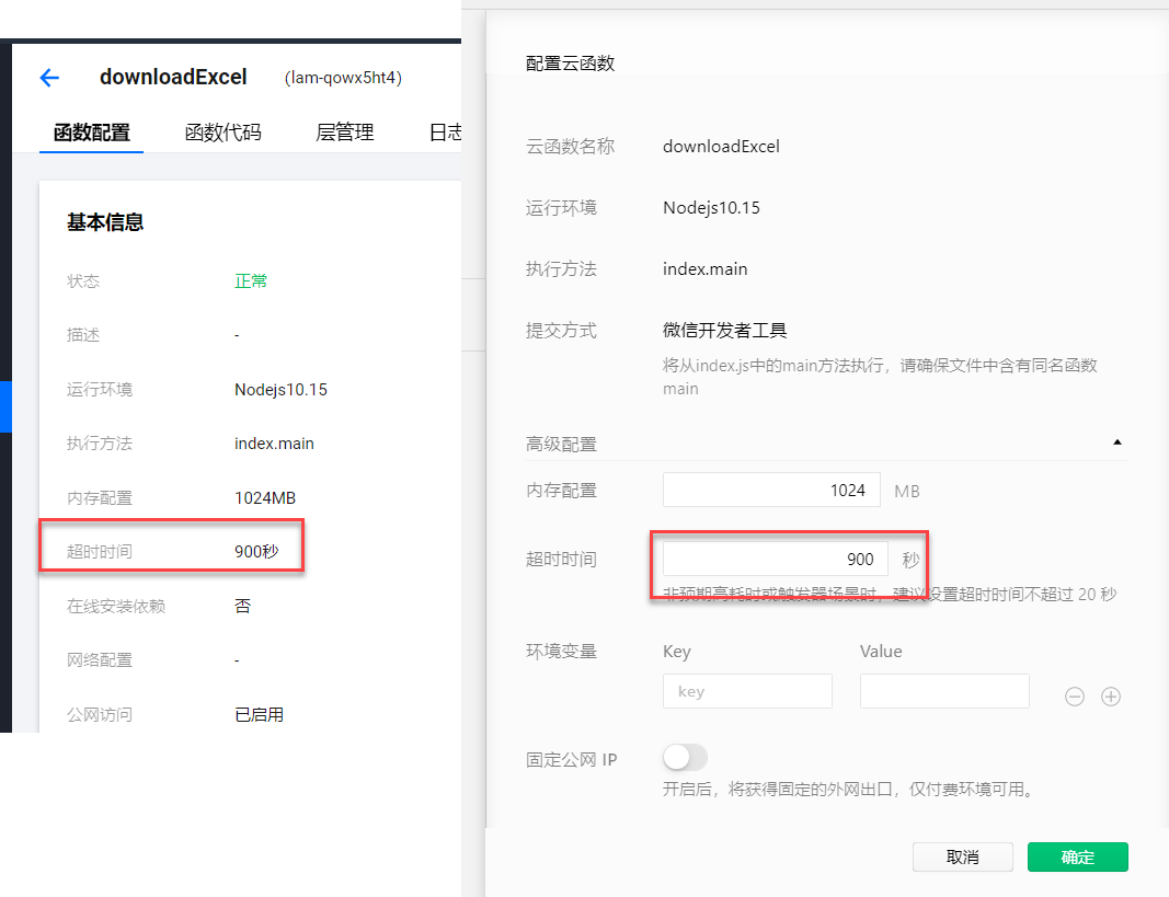 无论在IDE上,还是云环境后台,超时都是900s