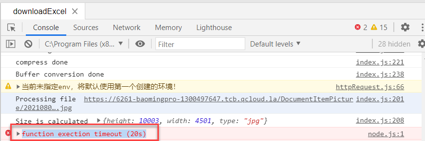 启动本地调试云函数,云函数运行超过20s会报错如下:
