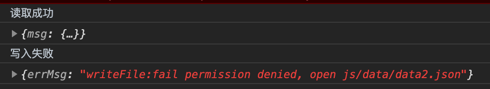 // 用的是 Mac笔记本,结果输出错误:writeFile:fail permission denied, open js/data/data2.json