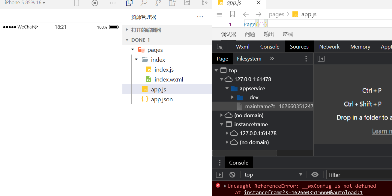 提示缺少app.js文件,但是这个文件缺失在指定的位置了