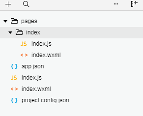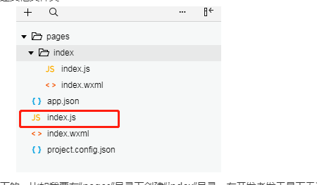 {"pages": ["pages/index/index"]}2.在根目录下新建pages目录,然后在pages目录下新建index目录,接着在index目录下创建两个文件index.wxml和index.js。