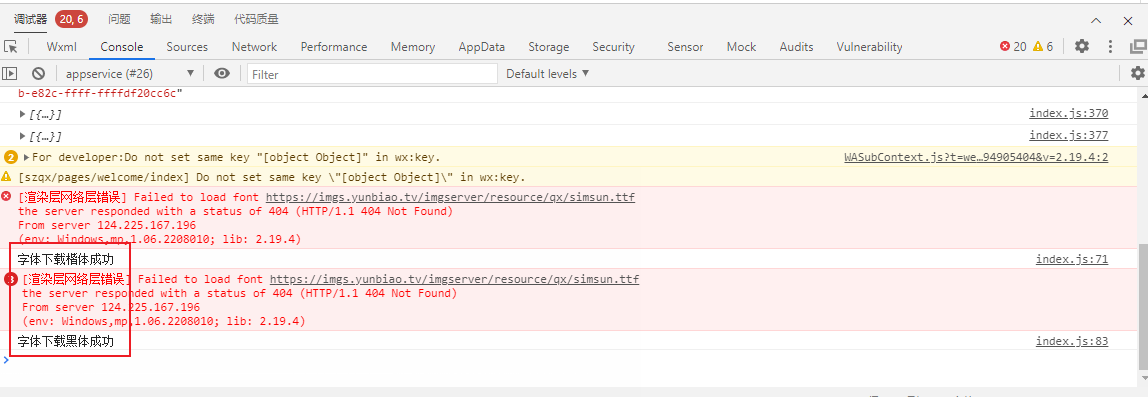 小程序开发工具调试环境可以下载字体,到了手机上就下载不了