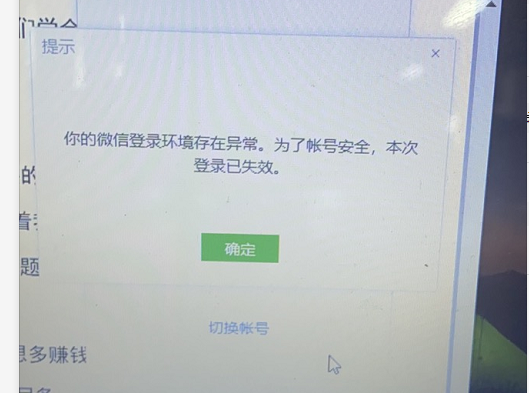 你好,提示“登录环境异常,本次登录失效,请重新登录”的问题,重新扫码登录即可,出现该提示一般是由于微信帐号被其它用户投诉导致(如:涉嫌频繁发送营销类广告骚扰信息等,请遵守微信使用规则,并规范个人行为,谢谢!)