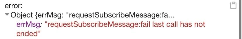requestSubscribeMessage:fail last call has not ended 。调用这个,什么都不做,就立马报这个,我都没有点击返回上一页。哎 ,真的是要把小程序所有的坑都淌一遍,百度一下午,也没有解决的办法,最新版本微信,vivo手机。