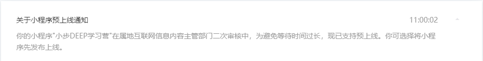 你好,经核实,查看到贵方小程序二次审核已返回站内信通知,请以站内信通知为准,后续小程序若有其他问题,会有站内信通知。
