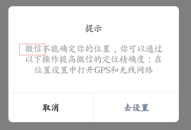 你没发现是弹窗内容是"微信不能确定你的位置"而不是"美团不能确定你的位置"吗?