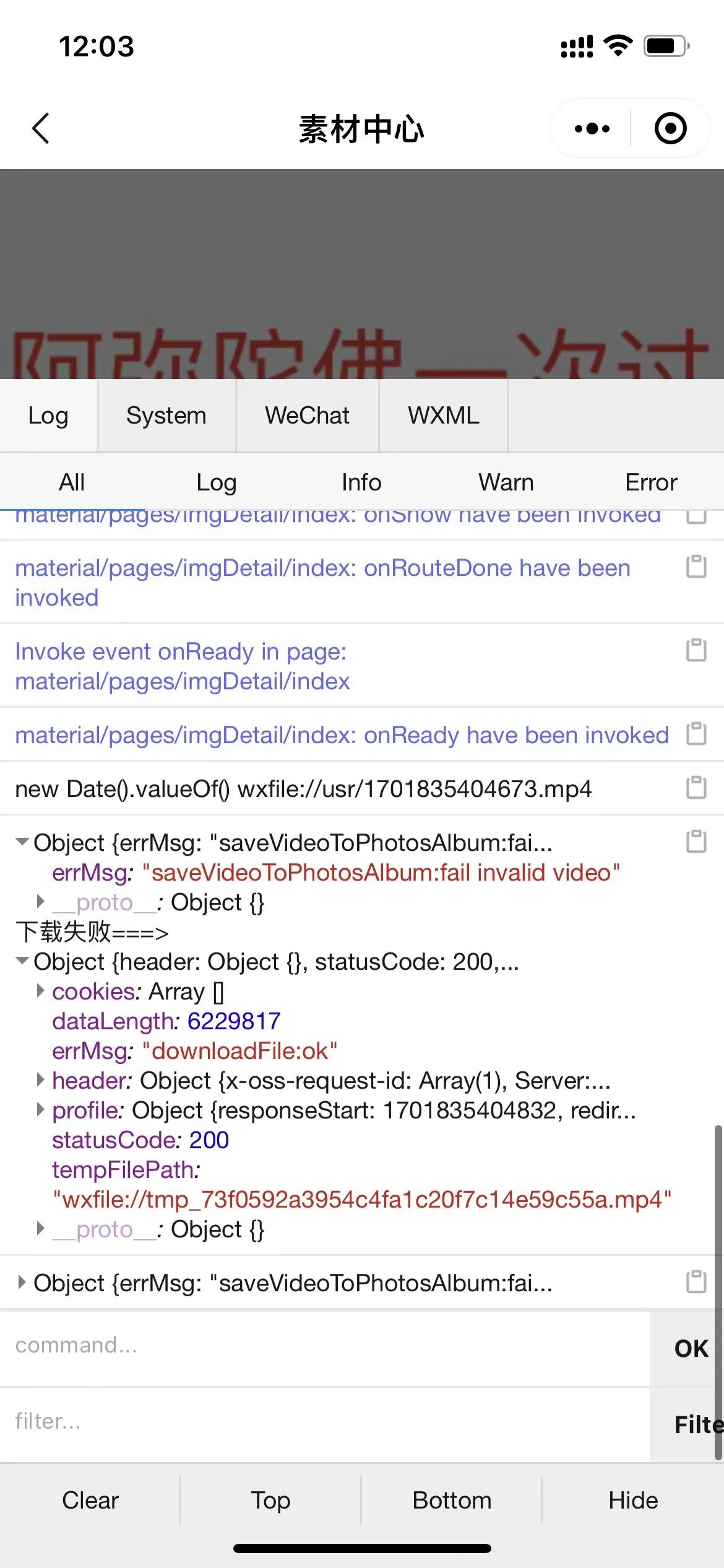 /**/ let filepath = wx.env.USER_DATA_PATH + '/' + new Date().valueOf() + '.mp4' // 加上临时路径 会报 saveVideoToPhotosAlbum:fail get file path fail?