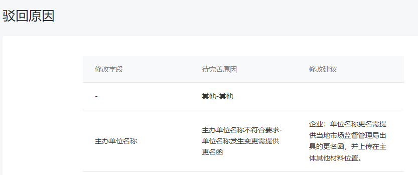 这边被驳回了,反馈的是名称变更需要更名函。但是我这边已经提交了市场监督管理局发的名称变更通知截图。还不行,能否告知到底需要什么资料么?