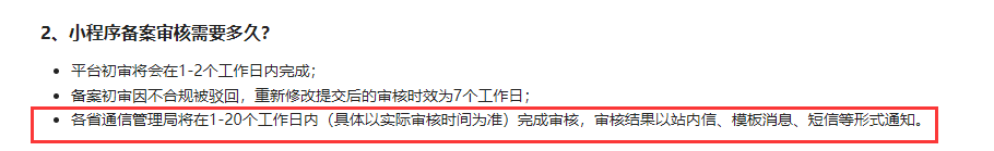 管局审核是你主体当地政府部门通管局审核的,无法加急,20个工作日内都是正常的,备案订单少的话,可能3-5天就审核通过了,备案订单多的话,可能就慢些。
