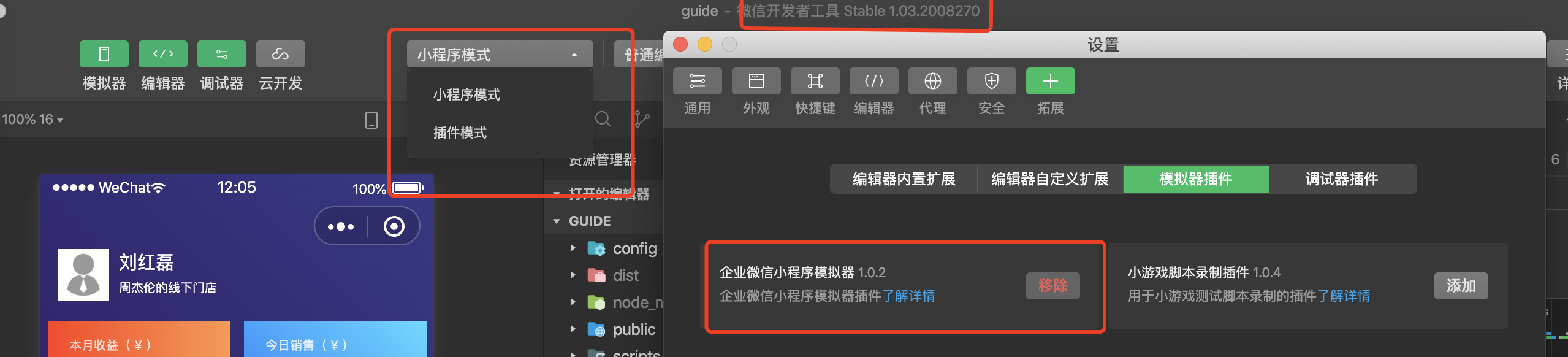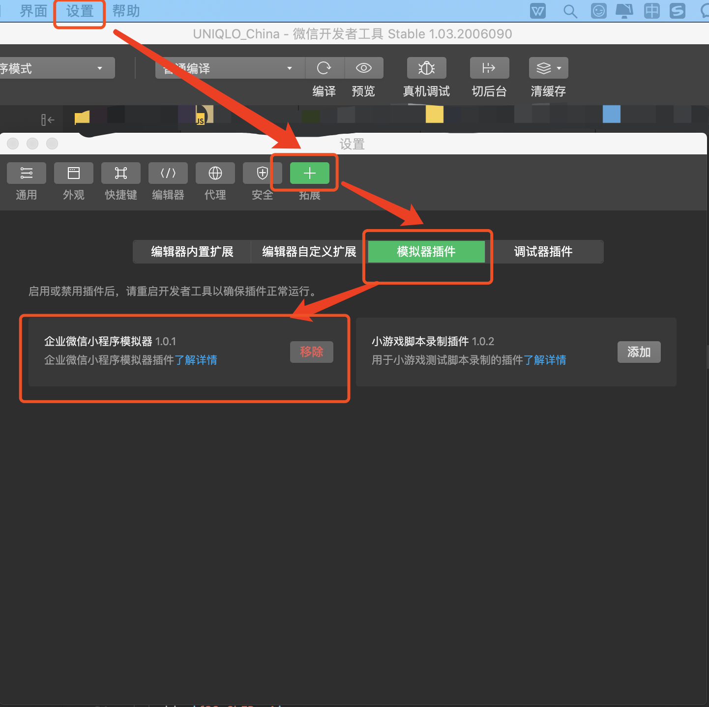 要自己安装进去的,选择工具 -> 插件菜单 ->安装企业微信小程序模拟器插件,前面应该说明下记得看我给的文档链接哦