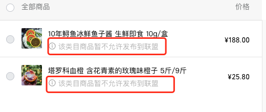 橙子和鱼子酱类目都不容许发布到优选联盟吗? 请问一下有没有详细的说清楚的,到底那些品不能再优选联盟上发布?