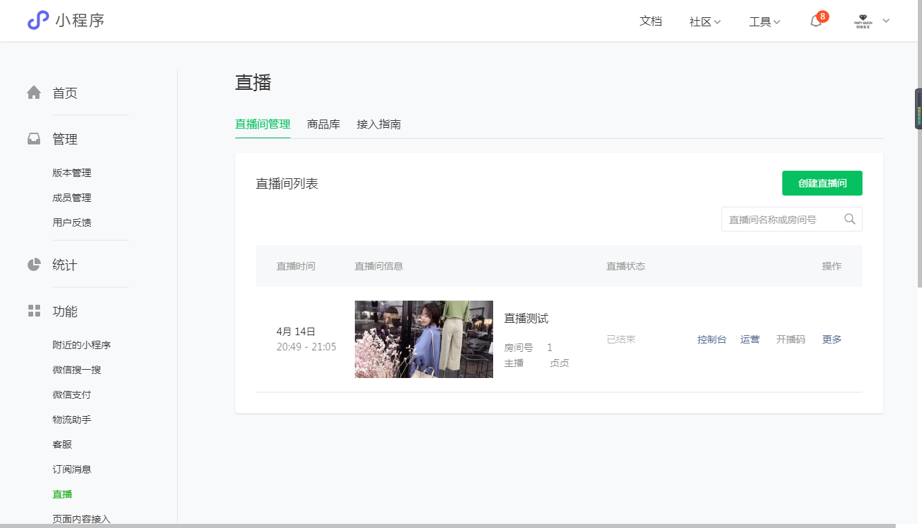 可参考:“小程序直播”接入指引? - 微信开放社区 https://developers.weixin.qq.com/community/minihome/doc/0008ce654c4450244c1a7e5de5b801