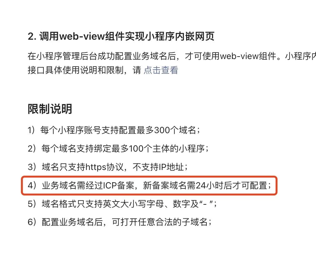 我这边有个海外小程序需要使用webview组件,目前看文档看业务域名需经过ICP备案,但是海外的域名无需备案啊,这个问题怎么解呢?
