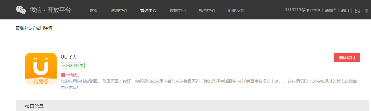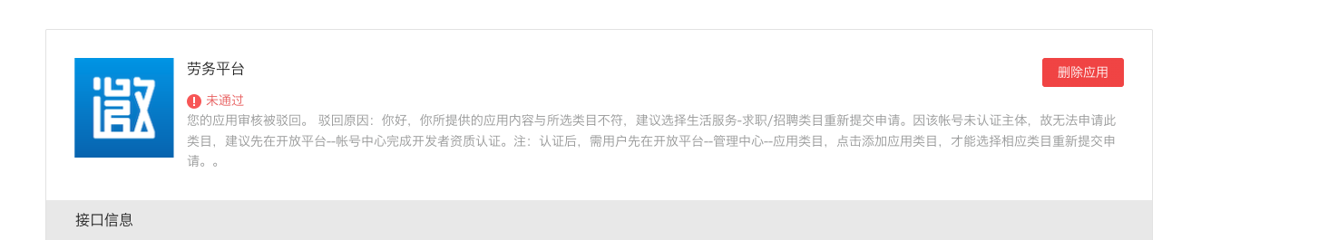 因为app更名,所以需要在微信开放平台对名称进行修改,修改提交后当天审核结果就下来了,提示:您的应用审核被驳回。 驳回原因:你好,你所提供的应用内容与所选类目不符,建议选择生活服务-外送类目重新提交申请。 。该应用仍以上次审核通过的状态在微信中正常运行。 我重新进行了修改,但是类别根本就无法选择变更,请帮忙处理下。