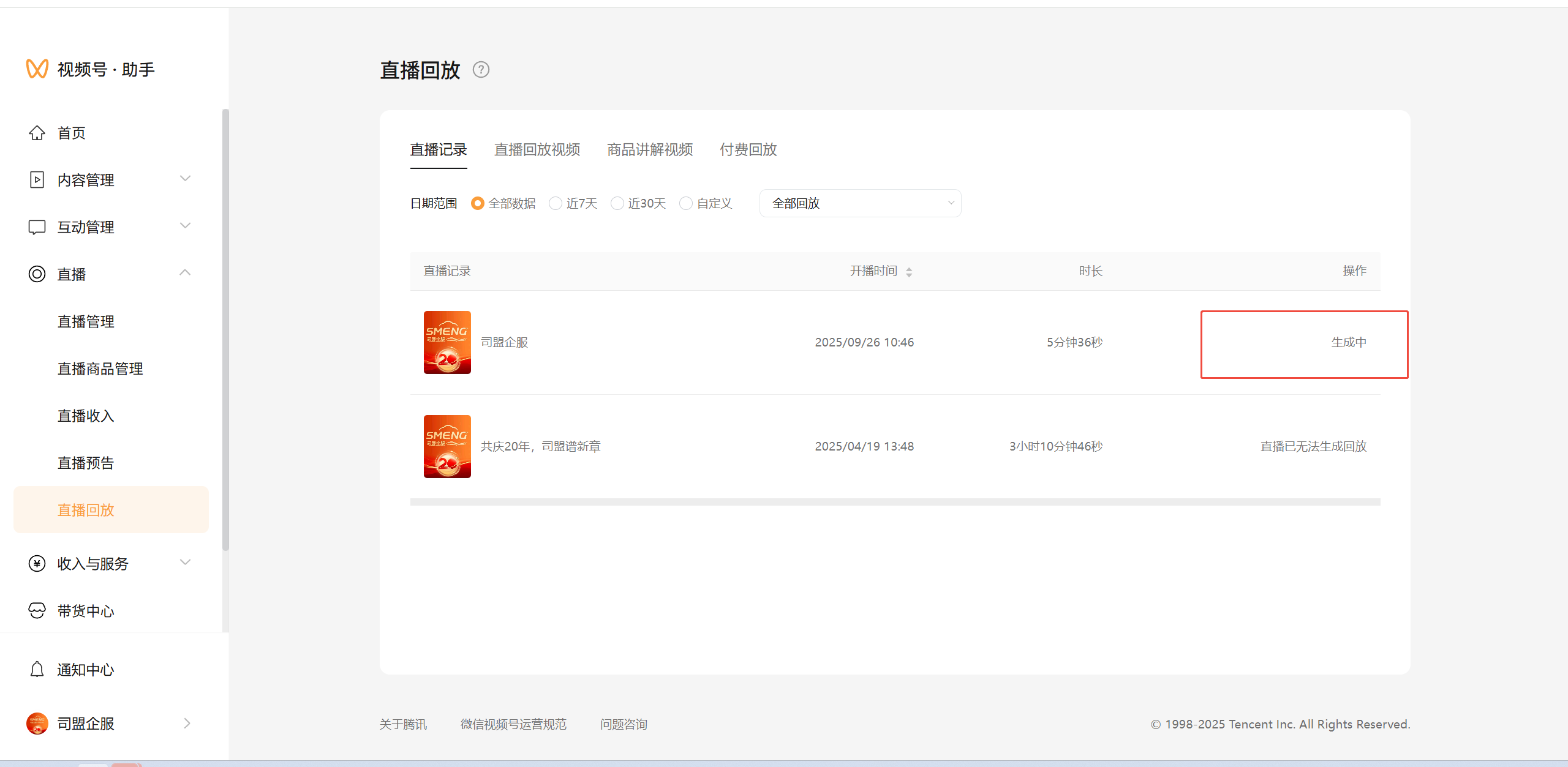 文档中显示wx.getChannelsLiveInfo可以获取直播信息,包含直播、直播回放和各状态,以status和replayStatus表示各状态,目前在视频号助手后台对直播回放进行了生成,但是获取的直播信息里没有replayStatus===1(已生成)的,只有status===3(直播结束的),请问原因是什么?