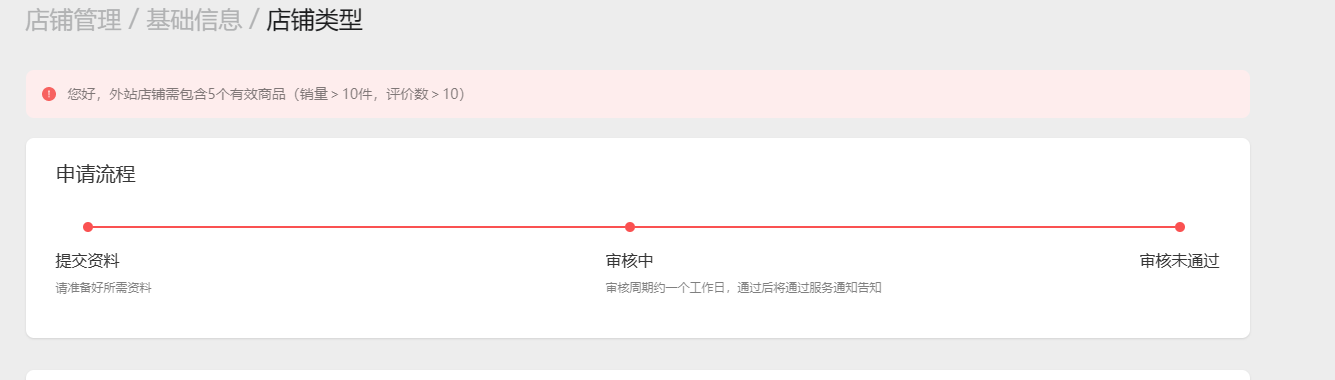 首先我是在修改店铺类型里面改的,但是里面只有提交商标注册证的一些流程,这些都填完了之后审核失败,说是需要站外销售链接大于五评价大于十,我们站外有自己的天猫旗舰店,可是我不知道在哪里提交资质啊????麻烦工作人员给个答复!!!